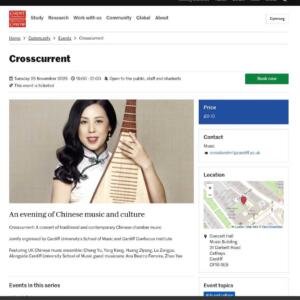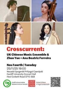 The UK Chinese Music Ensemble is delighted to be invited to perform at Cardiff University for CrossCurrent, a concert exploring the dialogue between traditional Chinese instrumental music and contemporary chamber compositions.