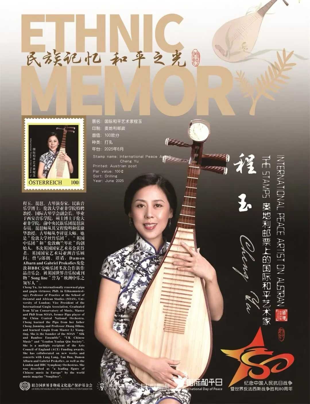 In recognition of her outstanding artistic achievements and contribution to cross-cultural understanding, Professor Cheng Yu was awarded the title of “International Peace Artist” by the United Nations World Intangible Cultural Heritage Protection Foundation.