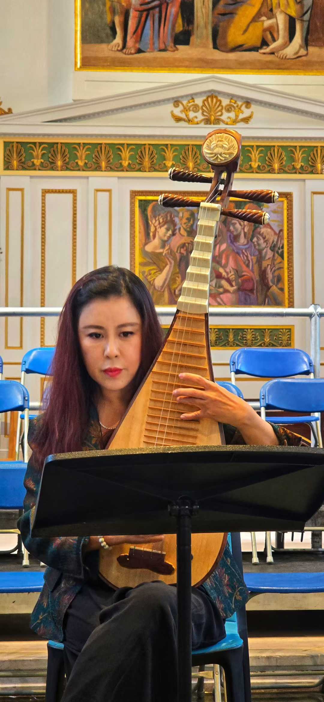 Professor Cheng Yu presented a stirring performance of the third movement, “The Yellow River Flows from Heaven” (黄河之水天上来), arranged for pipa, piano, and narration.